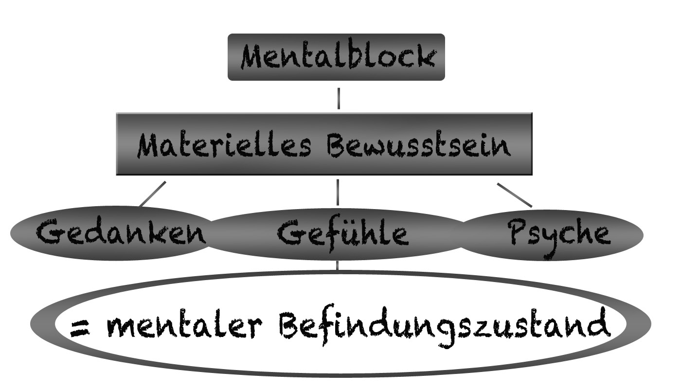 Es ist jedoch so, dass in Wahrheit die Psyche den halbmateriellen Block im materiellen Körper und dessen Bewusstsein verkörpert. Die Psyche ordnet und verwaltet die Gedanken und Gefühle in positiver, negativer oder ausgeglichener Folge. Somit ist sie zuständig für die erforderliche Ausgeglichenheit und Harmonie des Körpers und dessen Bewusstsein, folglich ist es also so, dass die Psyche für die Gesundheit des Bewusstseins, aber auch für dessen Unausgeglichenheit, Disharmonie, Depressionen, Krankheiten oder Verwirrungen massgebend ist. Das bedeutet, dass durch unsere falschen und wirren Gedanken, Gefühle und Handlungen in unserem materiellen Bereich die Psyche krank und verwirrt werden kann, weil eben das materielle Denken noch sehr unvollkommen, anfällig und angreifbar ist.