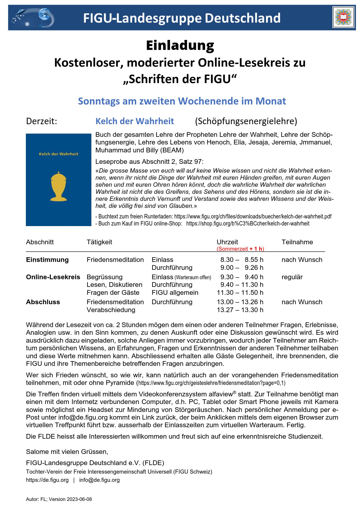 Interessenten für den Schöpfungsenergielehre-Studienteil bitten wir, sich über info@de.figu.org anzumelden.