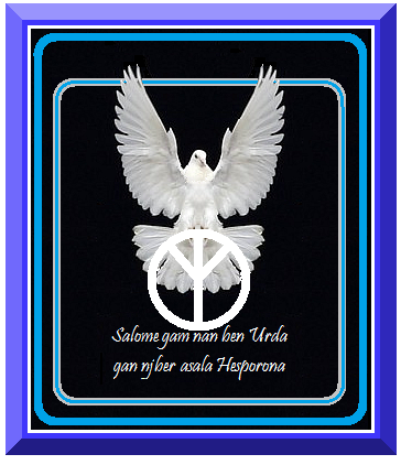 Der altlyranische Spruch "Salome gam nan ben Urda gan njber asala Hesporona" heisst übersetzt: "Friede (Salome) sei auf der Erde (Urda) und unter (njber) allen (asala) Geschöpfen (Hesporona)"