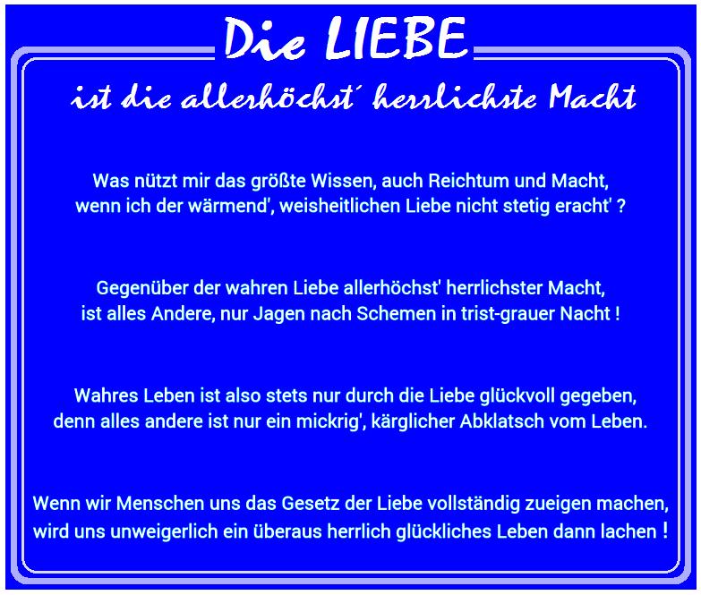 Gegenüber der wahren Liebe allerhöchst´ herrlichster Macht,