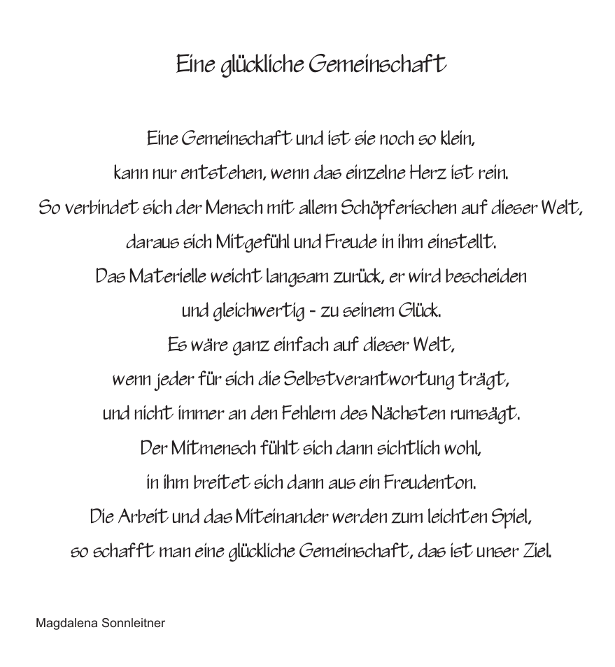 so schafft man eine glückliche Gemeinschaft, das ist unser Ziel.